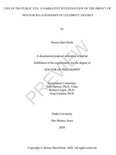 Dr. Hart’s dissertation was titled Life in the Public Eye: A Narrative Investigation of the Impact of Mentor Relationships of Celebrity Figures. Mentoring is an important topic of interest, not only by celebrities and other public figures, but by the population in general. Because there is a dearth in the literature of celebrities and mentoring, Dr. Hart’s research contributed to that body of knowledge.